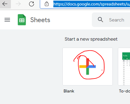 Setelah tampilan google sheet muncul maka anda harus membuka google sheet baru atau anda bisa buka google sheet yang telah anda buat sebelumnya. Pada contoh kali ini kita akan membuat google sheet yang baru. Klick tanda + berwarna untuk membuat google sheet yang baru.